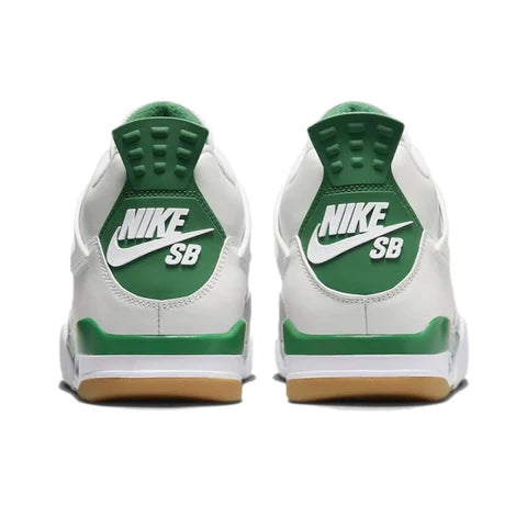 The Air Jordan 4 SB “Pine Green” is an alternate version of the retro basketball shoe that’s updated with a performance skateboarding focus. A collaboration between Nike SB and Jordan Brand on Michael Jordan’s fourth signature shoe, the Jordan 4 SB is designed in a smooth white leather upper with a light grey suede overlay on the toe and forefoot. Contrasting Pine Green detailing appears on the heel counter with “Nike SB” branding and on the plastic eyelets. Tonal mesh is found on the mid-panel and tongue. A red Jumpman is located on the tongue.