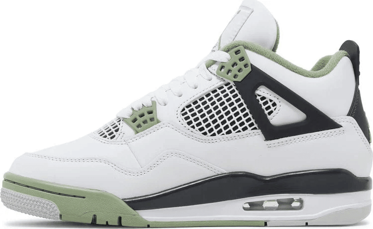 The Air Jordan 4 “Oil Green” is a color-way of the classic sneaker that adds to its impressive collection of releases. In the “Oil Green” color-way, this Jordan 4 is complete with a white leather construction with tonal netting on the tongue and mid-panel. Seafoam-colored eyelets are found on the sides of the shoe and additional Seafoam accenting appears on the Jumpman on the tongue and on the heel. The minty-green hue is also on the interior collar and on the rubber overlay on the toe and forefoot on the outsole. A visible Air bubble appears in the heel of the midsole. Release date: February 9, 2023